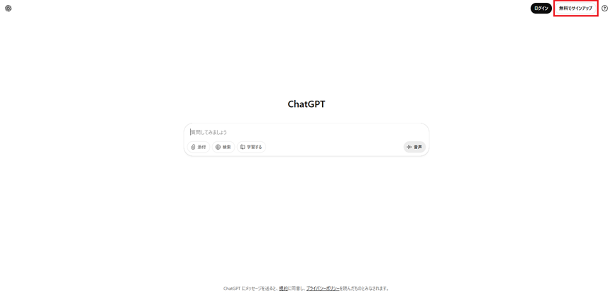 - ブラウザで https://chat.openai.com にアクセスします。